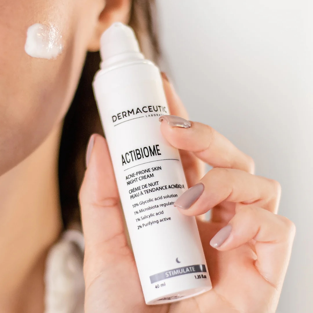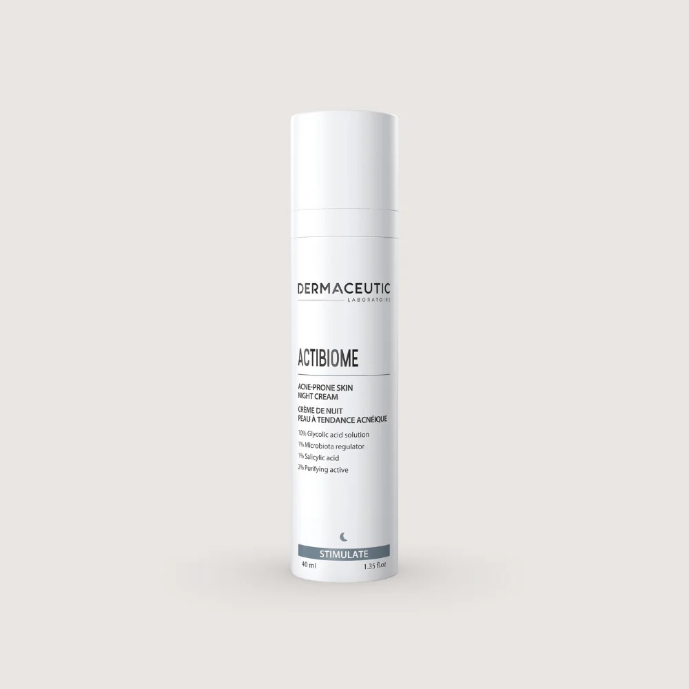 Actibiome van Dermaceutic is een nachtcrème die specifiek is ontwikkeld om (hormonale) acne te te gaan, exfolieert en reinigt verstopte poriën. Ondersteund de natuurlijke huid microbiotica zodat schadelijke bacterievorming voorkomen word, reguleert de talgafgifte van de huid.