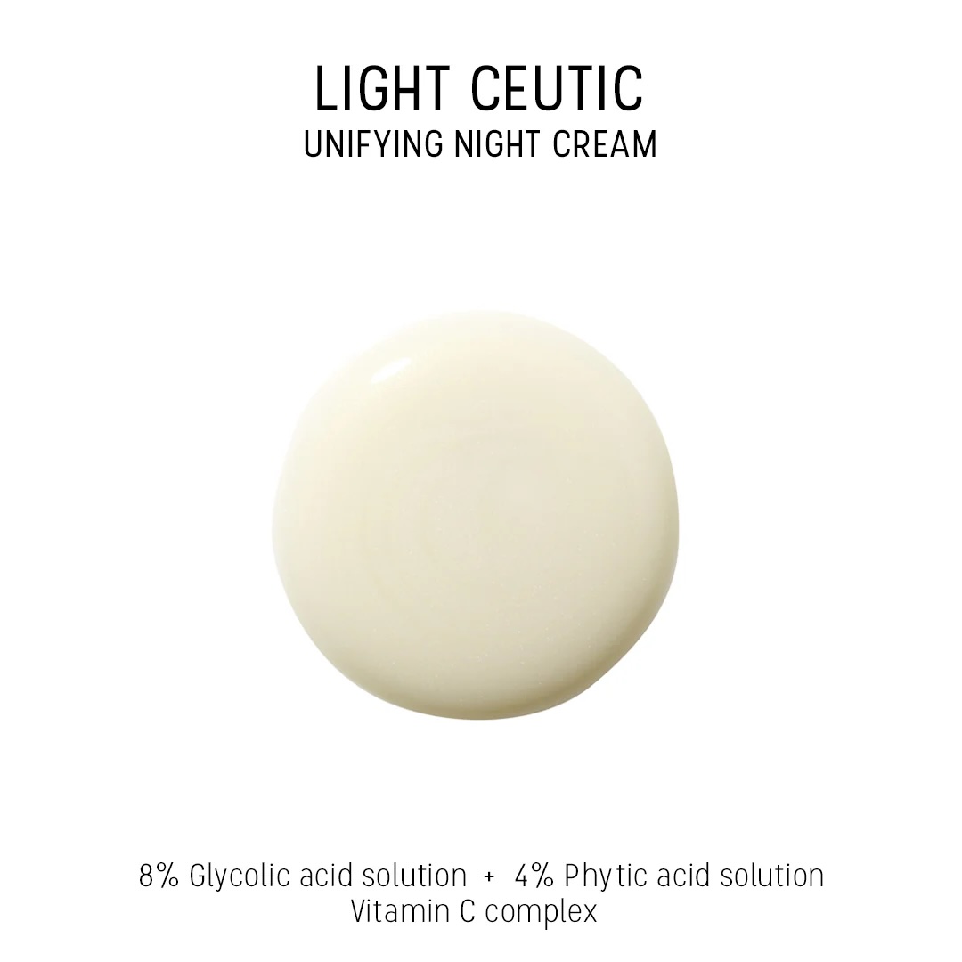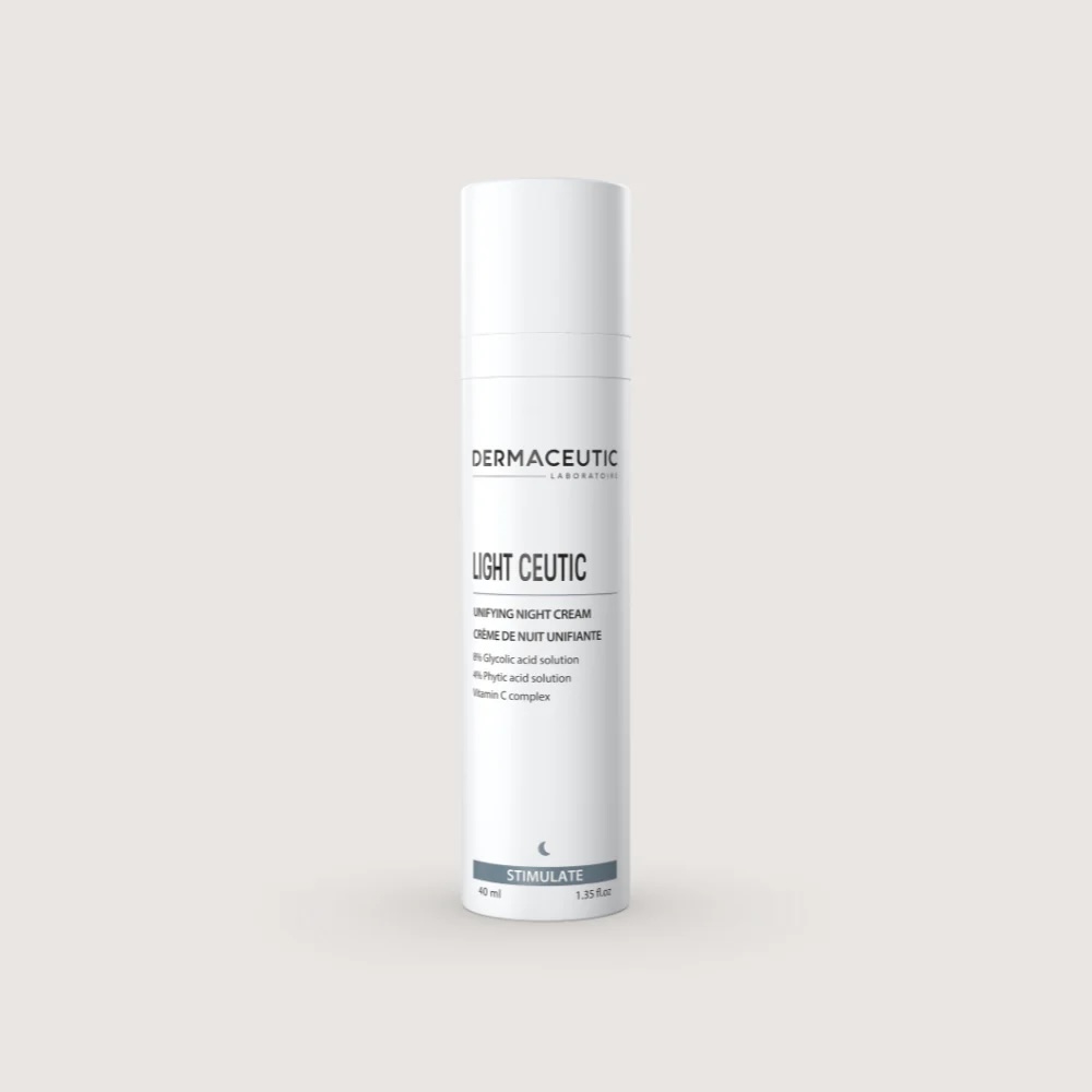Verhelderende nachtcrème, voorkomt pigmentvlekken, werkt ontstekingsremmend. Light Ceutic is een nachtverzorging welke bestaande pigmentvlekjes verbetert en die je teint egaler maakt. Antioxidanten versterken je huid en de aanmaak van nieuwe pigmentvlekjes en ontstekingen wordt afgeremd dankzij de combinatie van ingrediënten in deze crème. Je huid ziet er egaler en stralender uit!